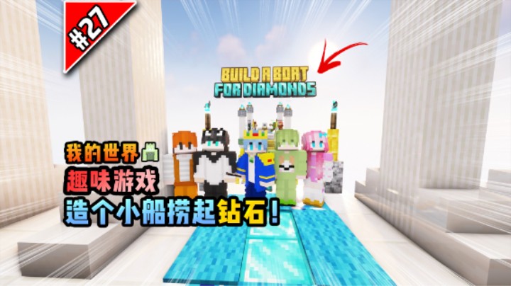 我的世界趣味游戏:造个小船捞起钻石!